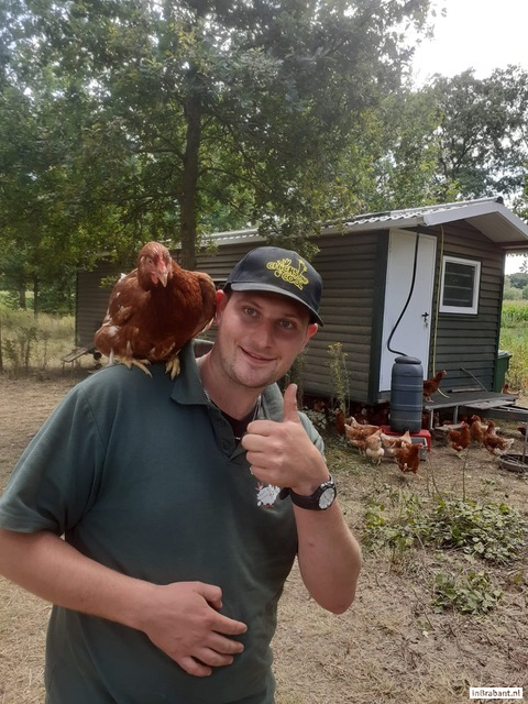Net als hulpboer Michiel, die ondertussen de kippen heeft bijgevoerd, 180 eieren van de band heeft gehaald en heeft ingepakt. Op naar de volgende Brabantse kipcaravan!